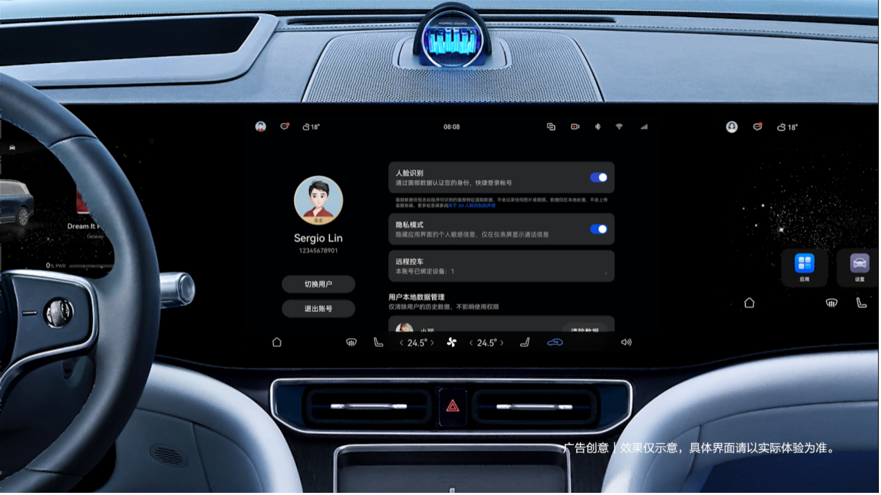 在同事或朋友共乘时,主驾驶位的隐私模式将自动掩盖个人敏感信息,如通话记录和导航记录等。来电通知仅在仪表板上显示,同时启动主驾驶头枕音响的专注模式,使得接听电话和播放音乐仅为主驾驶者所闻,从而避免各种尴尬情境。